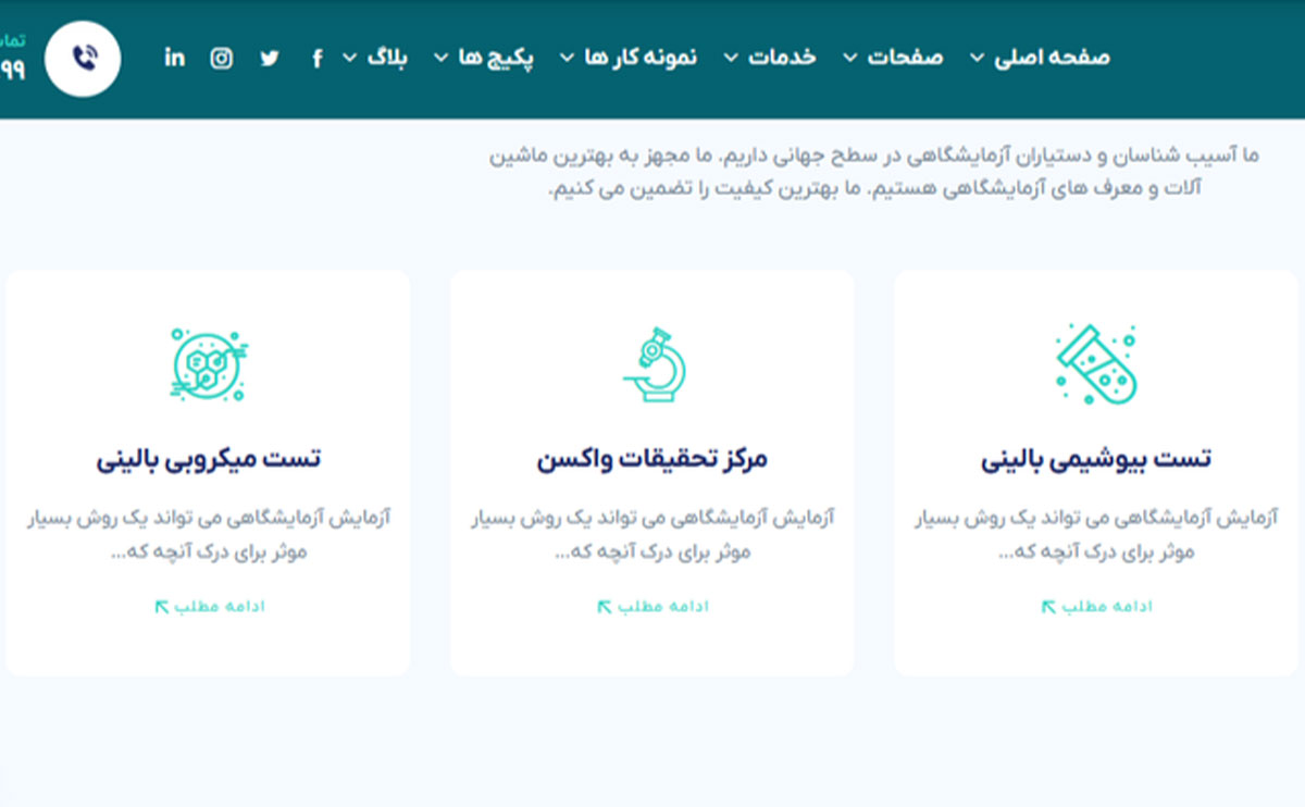 سایت خدمات درمانی برای معرفی مرکز درمانی با ارائه بخشهای مختلف از جمله پزشکان، ساعات کاری، تماس با مجموعه و امکانات آن