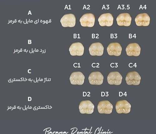 کاتالوگ رنگ کامپوزیت دندان شامل طیفهای مختلفی است و در چهار دسته A، B، C و D تقسیمبندی میشود. این دستهبندی به شرح زیر است: