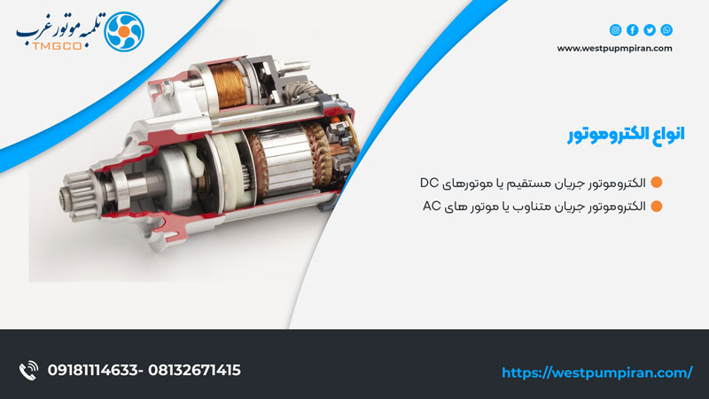 این نیرو بر روی حلقه سیم موجود در میدان مغناطیسی گشتاور ایجاد میکند که باعث میشود موتور بچرخد و کار مفیدی انجام دهد. موتورها در طیف گستردهای از کاربردها مانند فنها، ابزارهای برقی، وسایل برقی، وسایل نقلیه الکتریکی و غیره استفاده میشوند. علاوه بر این، الکتروموتورها بسته به نوع جریانی که استفاده میکنند، طراحی سیمپیچها و نحوه تولید میدان مغناطیسی به اشکال مختلف تولید میشوند. بر این اساس، آنها را میتوان به چند نوع دسته بندی کرد. ما دو نوع الکتروموتور را بر اساس منبع تغذیه طبقه بندی می کنیم: