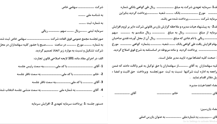 اظهارنامه افزایش سرمایه با فرمت ورد