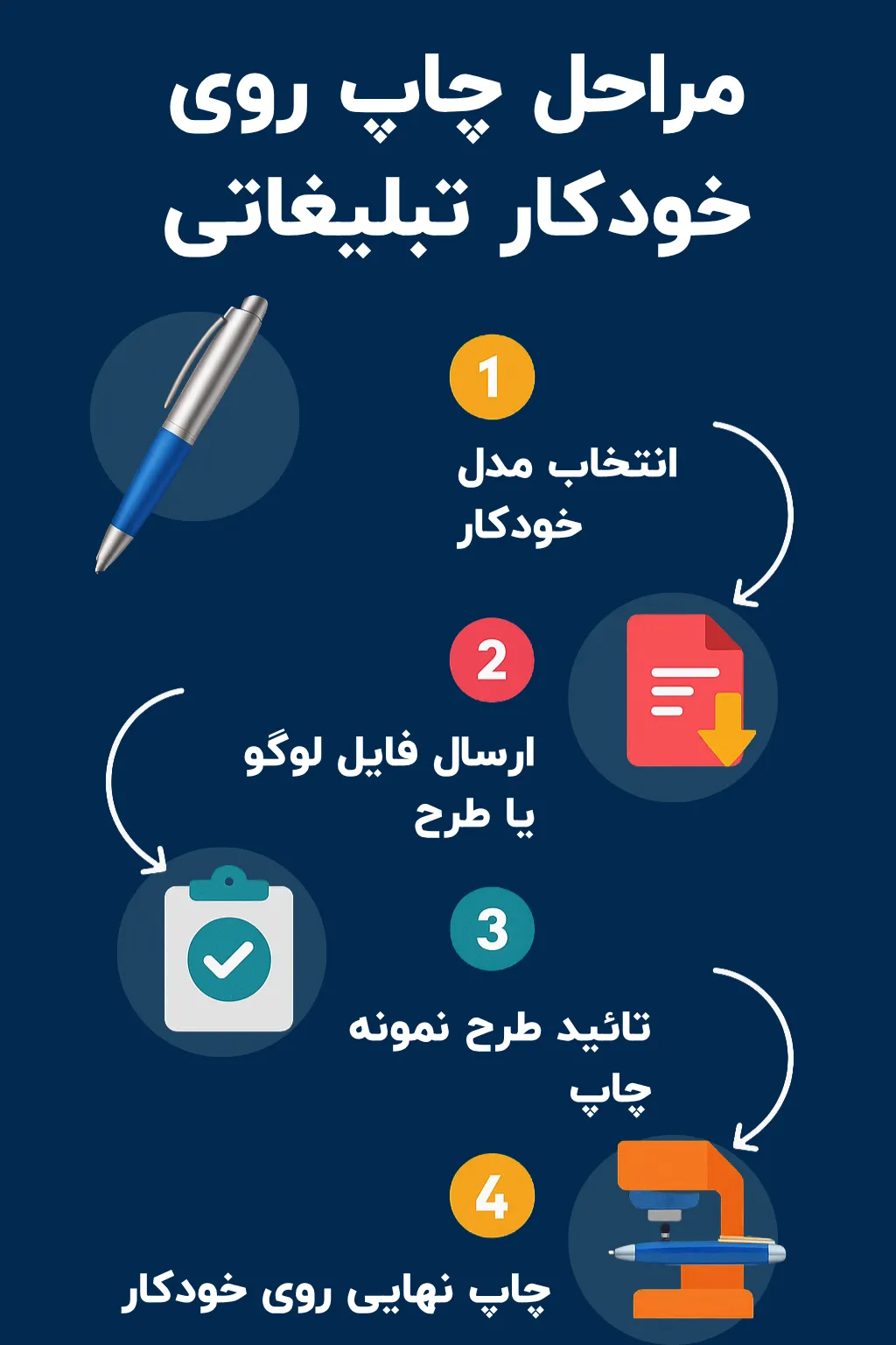 اینفوگرافی: مراحل چاپ روی خودکار تبلیغاتی در امیرگیفت