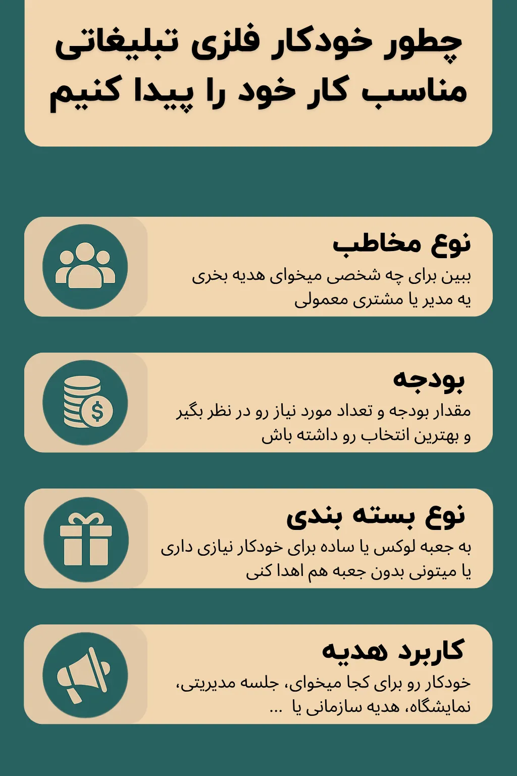 اینفوگرافی: چطور خودکار فلزی تبلیغاتی مناسب کسب و کار خود را پیدا کنیم؟