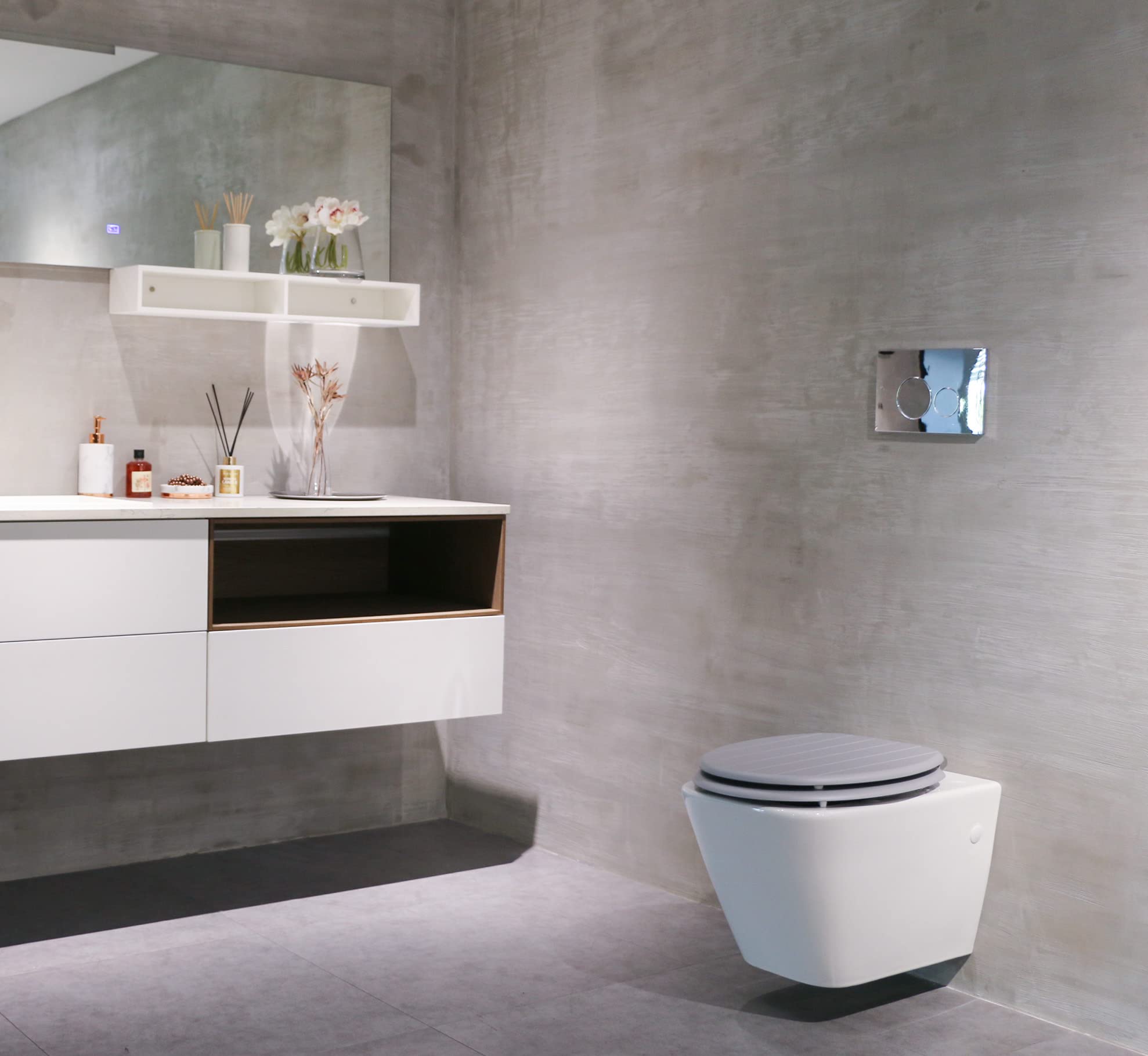 مدلهای توکار به دلیل مخفیسازی مخزن در داخل دیوار، فضایی یکدستتر و مرتبتر ایجاد میکنند. این نوع طراحی توجه را از مخزن به دکمهی تخلیه که معمولا کوچک و ظریف هستند، منحرف میکند. همچنین، باعث میشود فضای سرویس بهداشتی بزرگتر و وسیعتر به نظر برسد.