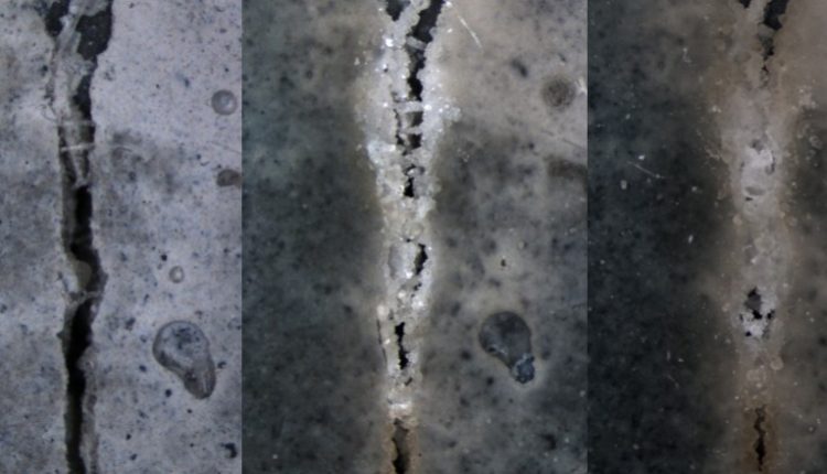 مکانیسم های ترمیم ترک تولید کربنات کلسیم است که ممکن است متعاقباً برای پر کردن ترک ها استفاده شود.