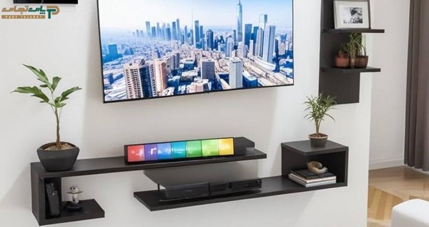 - استفاده از دکور پشت تلویزیون کتابخانهدار با امدیاف ساده