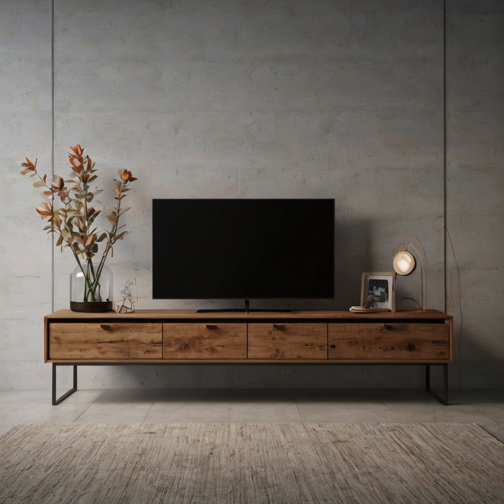 - اندازه مناسب تلویزیون و فضا: ابعاد تلویزیون و فضای اتاق را در نظر بگیرید. میز باید کمی بزرگتر از تلویزیون باشد تا تعادل بصری ایجاد کند.