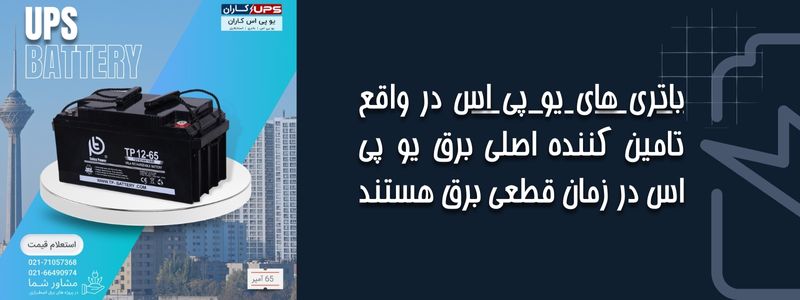 باتری  یو پی اس : با هدف ذخیره سازی انرژی الکتریکی و بهره گیری به عنوان منبع انرژی الکتریکی در یو پی اس